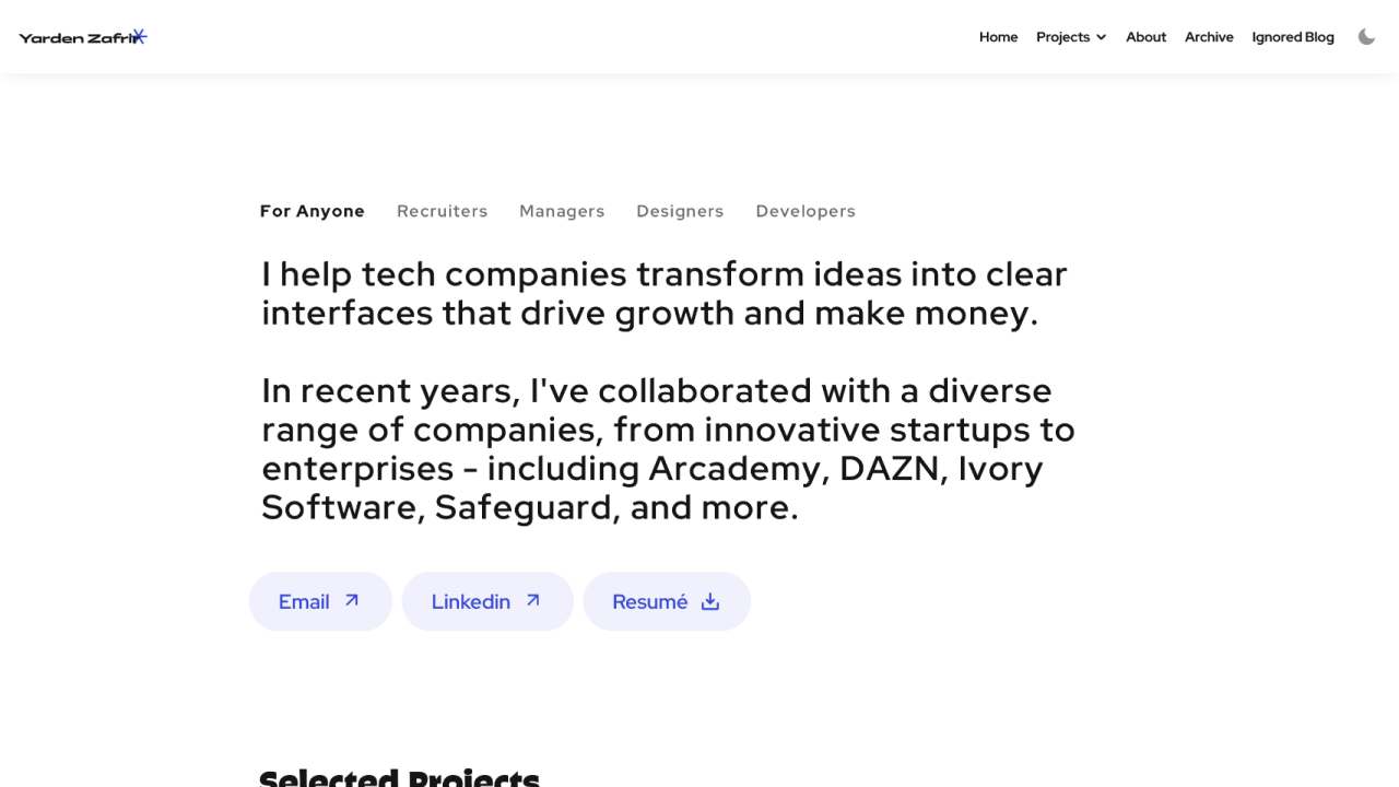 מנחה סדנאות דיזיין ספרינט ומלווה חברות משלב הקונספט ועד לשלב ההטמעה. עבדה על מגוון של פרוייקטים מתחומים שונים: זיהוי פנים, מסחר בשוק ההון, קופה רושמת ועוד.