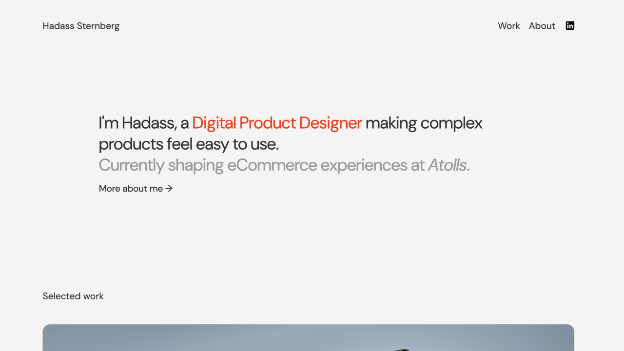 מעצבת חוויות משתמש וחוקרת משתמשים, מתמקדת בעיקר במערכות מורכבות, ומובילה את הפרודקט דיזיין בסטארטאפ של